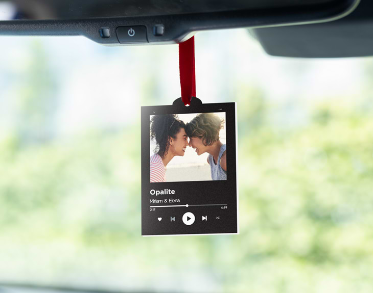¿Hay canciones que os recuerdan el uno al otro con solo sonar los primeros segundos? Tal vez sea la que sonó en vuestra boda o la que os transporta a un viaje especial. Por eso, este adorno colgante para coche personalizado “Canción Spotify” es el detalle perfecto para llevar vuestro amor siempre de viaje. Este colgante de metacrilato se personaliza con vuestra foto favorita, el nombre de la canción y el artista que marca vuestra historia. Además, va acompañado de una cinta roja, ideal para colgarlo fácilmente del espejo retrovisor y llenar cada trayecto de recuerdos y emociones. Es un regalo original para parejas, perfecto para sorprender en San Valentín, un aniversario, cumpleaños o simplemente porque sí. Cada vez que subáis al coche, ese momento, esa canción y esa persona especial os acompañarán allá donde vayáis. ¿Cómo personalizar este adorno para coche? Muy sencillo. Añade el producto al carrito y entra en nuestro diseñador. Allí podrás subir tu foto, elegir la canción y el artista. Nosotros nos encargamos de que el resultado quede precioso y listo para regalar. Un detalle pequeño, pero lleno de significado.
