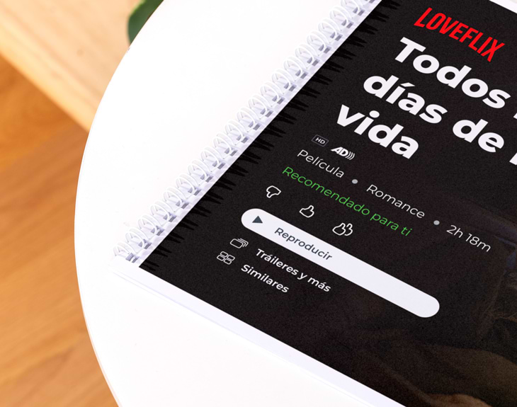 Si vuestra historia de amor mereciera una serie… sin duda estaría en Loveflix. Este álbum scrapbook personalizado está diseñado para contar vuestra relación como si fuera una auténtica serie o película de Netflix, donde vosotros sois los protagonistas. Un regalo original y diferente para revivir cada capítulo de vuestro amor de una forma creativa y muy especial. Desde el primer “episodio” hasta la temporada actual, este álbum te permite narrar vuestra historia con fotos, textos y momentos inolvidables. Podrás personalizar cada página como si fuera el menú de una plataforma de streaming: títulos, descripciones, fechas, frases y recuerdos que marcan vuestra relación. Ideal para sorprender en San Valentín, un aniversario o cualquier fecha importante para parejas amantes de Netflix. Olvídate de los regalos típicos y apuesta por un regalo personalizado para parejas que emociona de verdad. Este álbum tiene un diseño con la estética de Netflix, creando un recuerdo único que se guarda para siempre. Perfecto para contar vuestra historia como una serie romántica que siempre querrás volver a ver. ¿Cómo personalizar el álbum Loveflix? Es muy fácil. Solo tienes que añadir el producto al carrito y acceder al área de personalización. Allí podrás diseñar cada una de las 11 páginas: subir vuestras fotos favoritas, escribir los textos de cada “capítulo” y dar forma a vuestra propia serie de amor. Nosotros nos encargamos de que el resultado quede precioso y listo para regalar. Medidas del álbum: 29,7 x 42 cm aproximadamente.