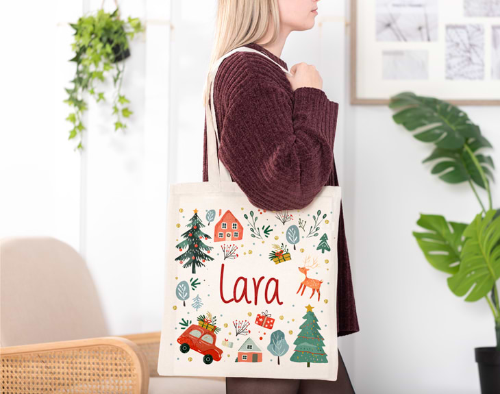 Se acerca la Navidad y ya estás empezando a preparar la lista de regalos para toda la familia. Si buscas un accesorio cómodo y que además lleve toda la magia de estas fechas, esta bolsa tote navideña personalizada es justo lo que necesitas. Con un diseño mágico y lleno de color, te acompañará en todas tus compras festivas, asegurando que no se quede ningún regalo olvidado.