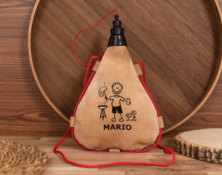 ¿Acaso hay algo más campestre que una bota de vino? Está claro que no. Y es que beber de una bota de vino es un clásico, allá dónde se vaya. Celebra esta tradición con nuestra bota de vino “Familia Hobbie”. Es un regalo muy original para los amantes del vino. Ideal para un cumpleaños, un amigo invisible o para una ocasión especial. Lo más guay que tiene es que es personalizable. Podrás escoge a un personaje de nuestra “Familia Hobbie”, hay hasta 150 diferentes, seguro que encuentras al personaje que más represente a tu amigo o amiga. Y puedes escribir su nombre. Sin duda, le encantará este detalle tan chulo. Y te preguntarás: ¿cómo personalizar esta bota de vino? El primer paso a seguir es añadir el producto al carrito y entrar al área de personalización. Una vez ahí, podrás escoger al personaje que más te guste y escribir el nombre que quieras. Nosotros nos encargamos de todo lo demás y de que quede listo para regalar. Medidas: 19 x 35 cm. Material: piel de serraje, con interior de látex. Cuidados: ¿Cómo limpiarla? Por dentro: Al tener interior de látex, no necesita curado con aceite ni vino. Simplemente vacía el contenido tras usarla y enjuaga con agua templada (no caliente). Puedes usar un poco de agua con bicarbonato o jabón suave si tiene olor. Déjala secar colgada y abierta, sin tapón, para que se airee bien. Por fuera (piel de serraje): No usar agua directamente en exceso. Limpia con un cepillo suave o paño ligeramente humedecido. Si quieres mantener la piel flexible, puedes aplicar aceite de pata de buey o grasa específica para cuero muy ligeramente (opcional).