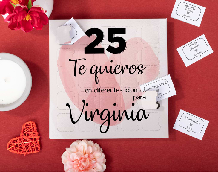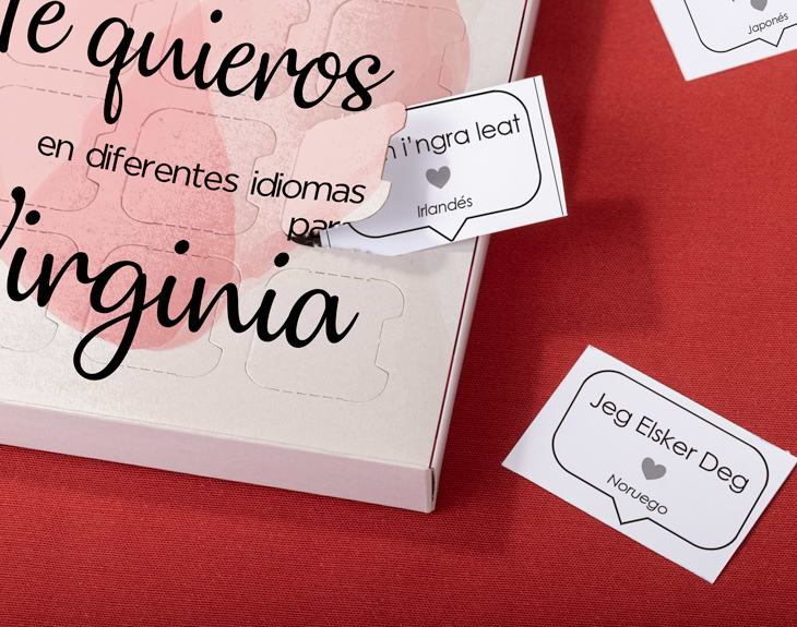 • Caja 25 'Te quiero' idiomas. • Tarjeta recordatoria.