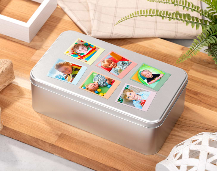 Los recuerdos importantes merecen un lugar especial donde guardarse. Por eso, esta lata de aluminio personalizada con fotos estilo Polaroid es mucho más que un simple envoltorio: es una auténtica caja de recuerdos pensada para conservar los momentos que marcan tu historia. Este diseño Polaroid te permite personalizar la lata con 6 fotos, que pueden ser en estilo Polaroid blanco o a color, creando un detalle precioso y lleno de significado. Es perfecta para guardar recuerdos de una boda, un aniversario, un cumpleaños especial o cualquier etapa importante de vuestra vida juntos. Entradas, cartas, fotos impresas, pequeños objetos… todo tendrá su sitio en esta caja tan especial. Regalar esta caja personalizada con fotos es una forma diferente y muy emotiva de sorprender. Ideal para entregar en San Valentín, pero también como regalo de boda, para celebrar años juntos o como detalle cargado de nostalgia y amor. Además, gracias a su diseño resistente y ligero, podrá reutilizarse una y otra vez sin perder su encanto. Personalizarla es muy sencillo: añade el producto al carrito y entra en nuestro diseñador online. Allí podrás subir tus 6 fotos favoritas, elegir si las quieres en Polaroid blancas o de colores y ajustar el diseño a tu gusto. Nosotros nos encargamos de que el resultado sea perfecto y esté listo para emocionar desde el primer vistazo. Una lata personalizada para guardar recuerdos que no solo se regala, sino que se conserva para siempre. Importante: La caja se vende vacía.