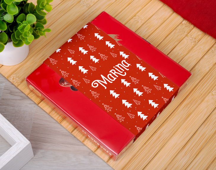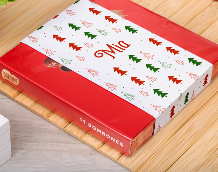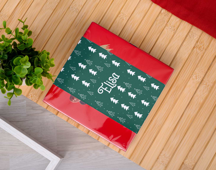 Un regalo que nunca falla son los chocolates, y esta caja de bombones navideña es la opción perfecta para endulzar las fiestas. Su diseño lleno de abetos y espíritu navideño la convierte en un detalle ideal para sorprender a alguien especial. Ya sea para tus compañeros de trabajo, amigos o familiares, con este regalo original de Navidad acertarás seguro. Lo que hace única a esta caja de bombones es que puedes personalizarla con el nombre que quieras. Así, cada persona recibirá su propio regalo, creado especialmente para ella. Una forma dulce y elegante de demostrar cuánto te importa y de compartir la magia de la Navidad. Personalizar tu caja de bombones navideña es muy fácil: solo añade el producto al carrito, entra en nuestro diseñador y elige el color de los abetos. Luego, escribe el nombre que quieras y listo. En pocos pasos tendrás un detalle navideño original, personal y delicioso… tan dulce como tú.