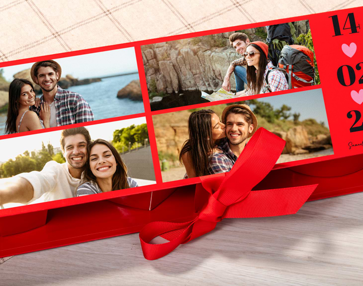 Esta caja I LOVE U dulce personalizada está pensada para celebrar el amor con sabor… y con recuerdos. Un detalle perfecto para sorprender a tu pareja en San Valentín, en vuestro aniversario o en cualquier fecha que merezca ser recordada de una forma especial y muy dulce. Podrás personalizarla con cuatro fotos y un texto especial: vuestros nombres, una fecha importante o una pequeña frase que represente vuestra historia. Un collage lleno de significado que emociona incluso antes de descubrir lo que hay dentro. En su interior, las letras I LOVE U esconden una sorpresa dulce pensada para compartir: diez Schoko-Bons, dos Kit Kat, dos mini botes de Nutella y una bolsita de chuches rojas surtidas, acompañadas de pétalos de rosa artificiales que aportan ese toque romántico que hace la diferencia. Una combinación ideal para una cita en casa, una sorpresa inesperada o un momento solo para vosotros. ¿Cómo personalizarla? Muy fácil. Añade el producto al carrito y entra en el área de personalización. Allí podrás subir tus cuatro fotos y escribir el texto que aparecerá en la tapa. Nosotros nos encargamos de prepararla con mimo para que llegue perfecta y lista para regalar. Un regalo dulce para parejas que se disfruta y se recuerda. Medidas aproximadas de la caja: Ancho 44 cm · Alto 5,5 cm · Largo 15,5 cm Material: cartón.