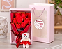 • Bolsa personalizada. • Ramo de flores artificiales aromáticas. • Osito "Love you". • Tarjeta recordatoria.