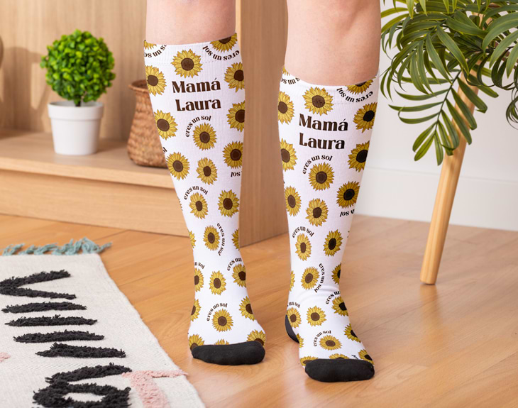 Si buscas un detalle bonito, original y lleno de cariño, estos calcetines personalizados “Mamá eres un sol” son justo lo que necesitas. Con un diseño alegre y lleno de luz, podrás añadir el nombre de mamá para convertirlos en un regalo único que le recordará cada día lo especial que es. Porque no hay nadie como ella… ¡y se merece decírselo de una forma diferente! Son perfectos como regalo para el Día de la Madre, su cumpleaños o cualquier ocasión en la que quieras sacarle una sonrisa. Un detalle práctico, cómodo y con un mensaje que siempre emociona. Además, puedes elegir recibirlos solos o añadir una lata personalizada, para hacer el regalo aún más completo y especial. Personalizar estos calcetines para mamá es muy fácil: añade el producto al carrito, escribe su nombre y nosotros nos encargamos del resto. Un regalo original para mamá que combina comodidad, estilo y mucho cariño como solo ella se merece. IMPORTANTE: Talla: única Medidas de cada calcetín: 41x9 cm. Medidas de la caja: 13,5x10,5x4 cm. Medidas de la lata: 11x8,5 cm. Material: poliéster.