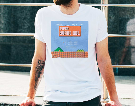 Super Mario ha marcado ya a varias generaciones. Por eso, este regalo es perfecto para todo amante de los videojuegos: personalízala con tu nombre y crea tu propia camiseta personalizada. Al adquirir el producto (y antes de pagar) se te preguntará el texto para la camiseta. Material: - Algodón: 100% algodón. - Tacto algodón: 100% poliéster cotton touch. - Técnicas: 100% poliéster. Importante: Las medidas son aproximadas, pueden variar 5cm por encima o por debajo.