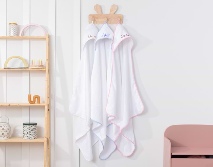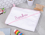 Suave y tierna capa de baño con el nombre de tu niño. Es el regalo perfecto para un recién nacido, ya que sus papás siempre lo utilizarán en el momento más especial del día: el baño. Las noches, sobre todo cuando toca baño, se convierten en los momentos más tiernos cuando eres te conviertes en papá. ¿Por qué no hacerlas más especiales? Esta es tu oportunidad. Tenemos diferentes tipos de diseño (osos, abejas, bailarinas, patitos...) y se envían de manera aleatoria. Importante: el diseño de la capa varía según stock y es posible que te llegue la capa sin dibujo, solo con el nombre bordado. ¡Es una gran sorpresa al completo! Medidas: 90 cm x 105 cm