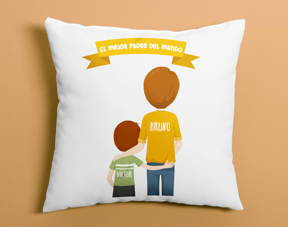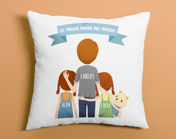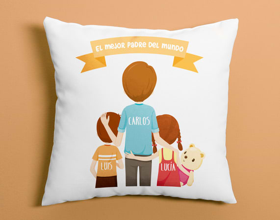 Si todavía no has agradecido lo suficiente a tu padre por ser como es, por ayudarte tanto y por sacarte siempre una sonrisa cuando más lo necesitas, este es el momento perfecto para hacerlo. Regálale este cojín personalizado para que vuestra relación se estreche todavía más. Te preguntaremos por el número de hijos y el sexo de los mismos para poder hacer el cojín a medida. Además, podremos poner los nombres de todos en las camisetas de cada personaje. De esta manera, tu papá recibirá un cojín único que le dirá que es el mejor padre del mundo. ¿Estás listo?