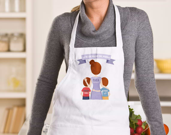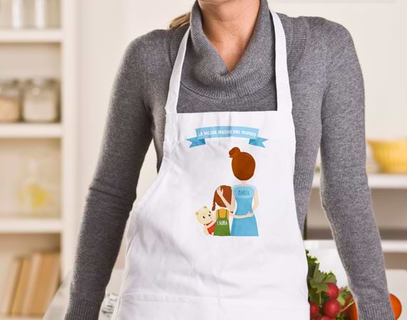 • Delantal de cocina personalizado. • Tarjeta recordatoria.