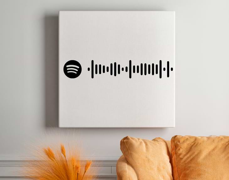 - Productos "Código Spotify": Estos productos se personalizan con el código de onda de tu canción Spotify. Nuestro sistema cuenta con un generador automático, por lo que simplemente tienes que escribir el nombre de la canción o cantante que quieras añadir y nosotros nos encargamos de crear el código e imprimirlo en tu artículo.