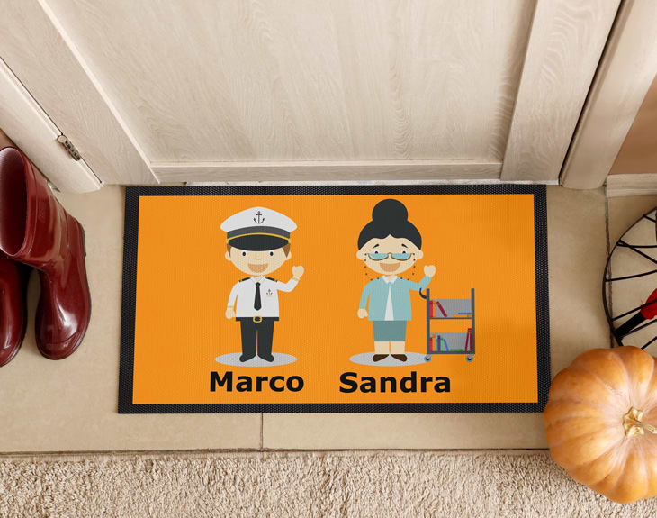 Con nuestro felpudo profesiones, podrás diseñar tu propio felpudo escogiendo entre 100 personajes diferentes. ¿Sois una pareja formada por un policía y una profesora? ¿Compartis piso tres estudiantes de enfermería? ¿Tu padre quiere presumir de ser el mejor bombero del país? ¡Seguro que a todos os encanta este felpudo! Elige hasta 6 personajes, color de fondo y tendrás un felpudo único. Importante: nuestro equipo de personalización se encargará de ajustar la distribución de los personajes en el producto en función de su tamaño para que se vean lo mejor posible. Importante: si tu profesión no está entre las que hemos diseñado, escríbenos a info1@regalooriginal.com y la hacemos en tiempo récord. Material: goma y microfibra.
