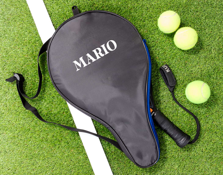 ¿Tu descubrimiento del año ha sido apuntarte a pádel? Está claro que es un deporte súper divertido y siempre te lo pasas genial. Además, hacer deporte es muy bueno para nuestro bienestar, tu cuerpo te lo agradecerá. Tenemos un complemento que no puede faltarte a la hora de jugar al pádel. Se trata de nuestra funda para raqueta personalizada. Esta funda de color negro es perfecta para guardar tu raqueta porque tiene un único bolso con cremallera. Además, podrás llevar esta bolsa colgada gracias a su asa ajustable. ¡Lo tiene todo! Te acompañara a los entrenamientos y a los partidos, manteniendo bien protegida a tu raqueta. ¡Serás la envidia de toda la clase de pádel! Personalizar esta funda para pádel es súper sencillo. El primer paso a seguir consiste en añadir el producto al carrito y entrar al área de personalización. Una vez ahí, puedes escribir el nombre que tú quieras. Pronto estará perfecta y lista para regalar. Será un regalo ideal para deportistas. Medidas: 50 x 30 x 3 cm. Longitud del asa: 91 cm (estirada al máximo)