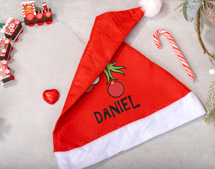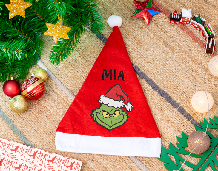 • Gorro de Papá Noel personalizado. • Tarjeta recordatoria