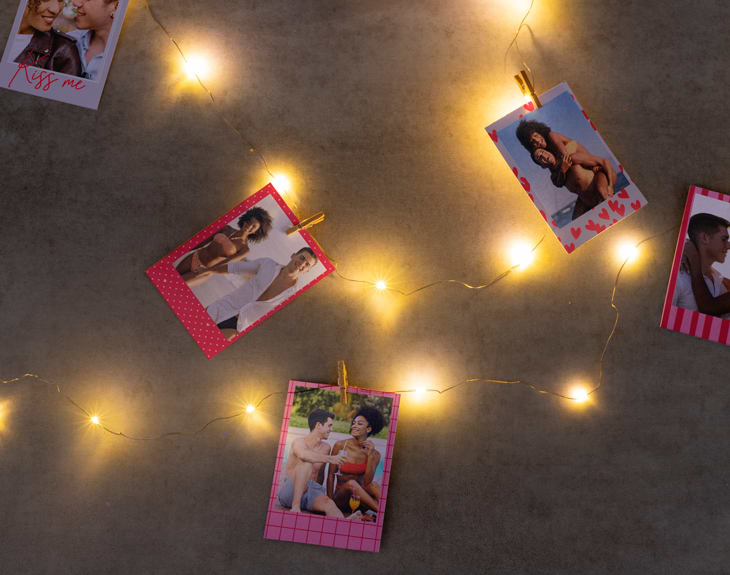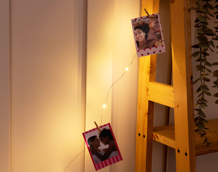 San Valentín no es solo un día, es la ocasión perfecta para expresar el amor de una forma especial y diferente. Si estás pensando cómo sorprender a tu pareja en la noche del Día de los Enamorados —o desde primera hora al despertar—, nuestra guirnalda de luces con fotos Polaroid y pinzas decorativas es ideal para crear un ambiente mágico y lleno de emoción. Ya sea que planees una cena romántica en casa o una sorpresa inesperada el 14 de febrero, esta idea enamora a cualquiera. La guirnalda de luces LED emite una luz suave y cálida, funciona con dos pilas AA (no necesita enchufe) y tiene una longitud de 3 metros. ¿Y lo mejor? Incluye 10 fotos Polaroid especiales de San Valentín, sujetas con 10 pinzas de madera, listas para colgar vuestros recuerdos más bonitos y llenar de amor cualquier rincón del hogar. Este regalo original para enamorados es muy fácil de personalizar. Solo tienes que añadirlo al carrito y, en el área de diseño, subir tus 10 fotos favoritas. En pocos pasos tendrás unas luces decorativas con fotos, perfectas para celebrar un aniversario, San Valentín o cualquier fecha especial que merezca ser recordada. Detalles de la guirnalda: - Longitud: 3 metros de alambre. - Tipo de luz: LED blanca, tenue y cálida (no parpadea). - Funcionamiento: cajetín para 2 pilas AA (no incluidas).