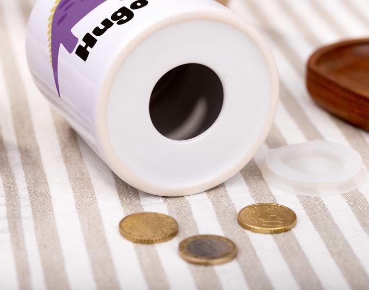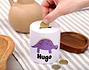 • Hucha de cerámica con tu foto y/o diseño en cajita individual. • Tarjeta recordatoria.