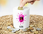 • Hucha de cerámica con tu foto y/o diseño en cajita individual. • Tarjeta recordatoria.