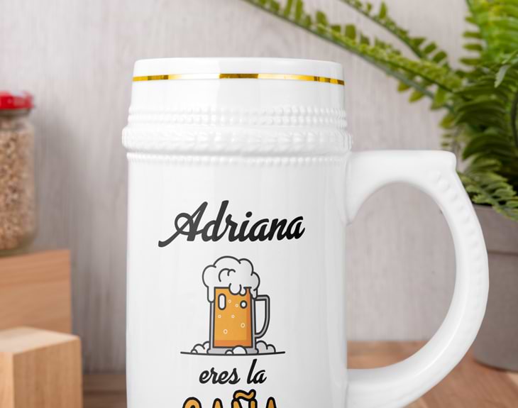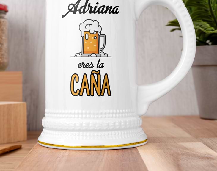 Hay amigos que siempre están ahí… y otros que además nunca dicen que no a una cerveza bien fresquita. Para esos auténticos cerveceros, esta jarra de cerveza personalizada con nombre y la frase “Eres la caña” es el detalle perfecto. Un regalo original ideal para sorprender en cumpleaños, celebraciones o simplemente porque se lo merece. Esta jarra de cerveza personalizada combina un diseño clásico, inspirado en las jarras de toda la vida, con un toque moderno y personal. Convertirás cada brindis en un momento especial. Porque no es lo mismo beber una cerveza cualquiera que hacerlo en una jarra que deja claro lo mucho que mola su dueño. Es un regalo original para amigos cerveceros, perfecto para disfrutar de cervezas en casa, ver un partido o montar un plan improvisado sin salir. Su estilo robusto y su buena capacidad hacen que sea práctica y, al mismo tiempo, muy decorativa. Personalizar esta jarra es muy sencillo. Solo tienes que añadir el producto al carrito y escribir el nombre en el área de personalización. Nosotros nos encargamos del resto para que el resultado sea perfecto y esté listo para brindar como se merece. Porque hay personas a las que hay que decírselo claro: eres la caña. Capacidad: 45 cl. Altura aproximada: 16,5 cm. Diámetro de la base: 9 cm.