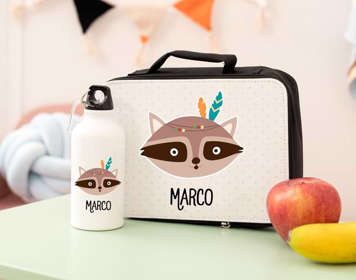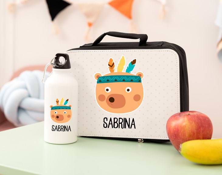 Ahora que se acerca la vuelta al cole, los más peques de la casa van a pasar mucho tiempo fuera de casa. Que si actividades extraescolares, ir a clase, excursiones, deportes... Por eso, es muy importante que siempre salgan de casa con todo lo necesario, así que este kit escolar no puede faltar. Tiene una cantimplora de agua y una lunchera para guardar comida. ¡No pasará ni hambre ni sed! Si quieres tener un detalle con él para animarle con su nueva rutina, este es el regalo perfecto. Este kit para la merienda tiene un diseño monísimo con nuestro estampado de animales de la tribu. Se puede elegir entre un mapache, un conejito, un koala o un oso pardo, elige el favorito de tu hijo y ya verás la ilusión que le hace. Imagina la carita de felicidad que pondrá cuando reciba este regalo tan guay, estará deseando que llegue la vuelta al cole para presumir de kit delante de sus compañeros. Pero lo más especial de todo es que es personalizable. Tú puedes escribir el nombre que tú quieras, así no tendrás que preocuparte por si pierde algo o se confunda, porque… ¡no habrá otro kit igual! Para personalizarlo, lo primero es añadir el producto al carrito y entrar al área de personalización. Podrás ver en todo momento cómo quedará el estampado en la vista previa de nuestra web. Medidas: 24 x 8 x 7 cm.