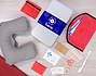 • Power bank. • Almohada hinchable. • Portadocumentos. • Cepillo de dientes portátil. • Botiquín (vendas, esparadrapo, tiritas, gasas, tijeras, almohadilla de preparación, cabestrillo, alcohol, tijeras). • Caja de metal con banda personalizada.