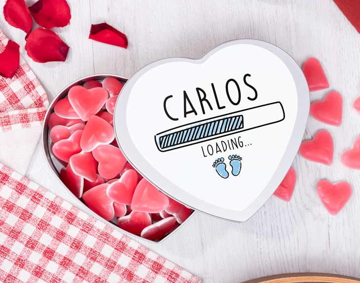 ¿Te imaginas sorprender a todos tus familiares con la mejor noticia de todas? ¡La llegada de un nuevo miembro a la familia alegrará a cualquiera! Si quieres darles este notición de la manera más original de todas, tenemos la solución. Sorpréndeles con nuestra lata de corazón personalizada con diseño "Bebé en proceso". ¡Es ideal para esta ocasión! Imagina la ilusión que le hará recibir esta latita papá del bebé, a la abuela, al tío, al hermano... ¡O a toda la familia! Sin duda, les encantará, además, está llena de corazones de gominola. ¡Será la sorpresa más dulce de todas! Y lo mejor de todo es que es personalizable, podrás escribir el nombre del bebé en la tapa de esta lata. ¡Quedara genial! Por último, personalizar esta lata de corazón es muy sencillo. El primer paso a seguir consiste en añadir el producto al carrito y entrar al área de personalización. Una vez ahí, ya puedes escribir el nombre del nuevo miembro de la familia y nosotros nos encargamos de todo lo demás. Pronto estará perfecto y lista para regalar. ¡Será un original regalo para nacimientos! Importante: El color de la lata puede variar en función del stock, pero no tendrás de qué preocuparte. ¡Quedará genial! Importante: si puedes tener reacción a cualquier tipo de alérgenos, puedes escribirnos para consultar si hay alguna opción alternativa.