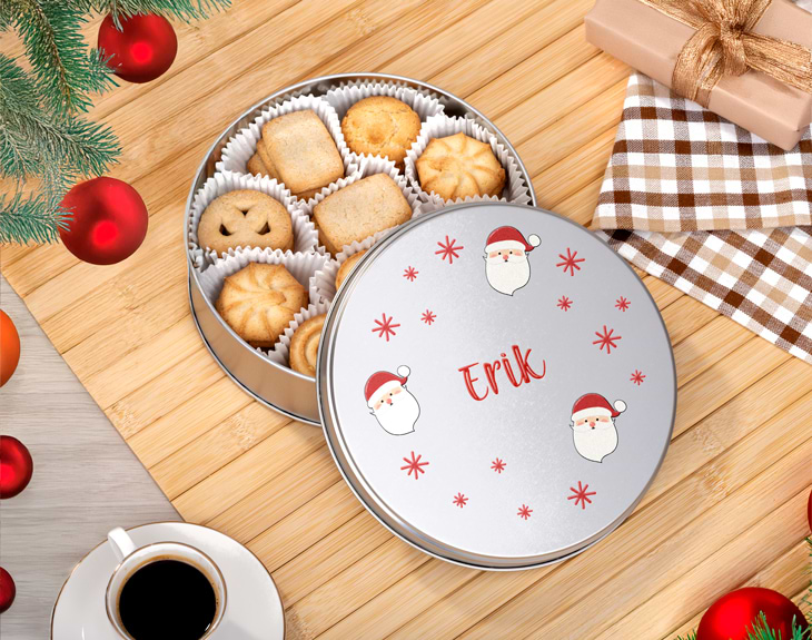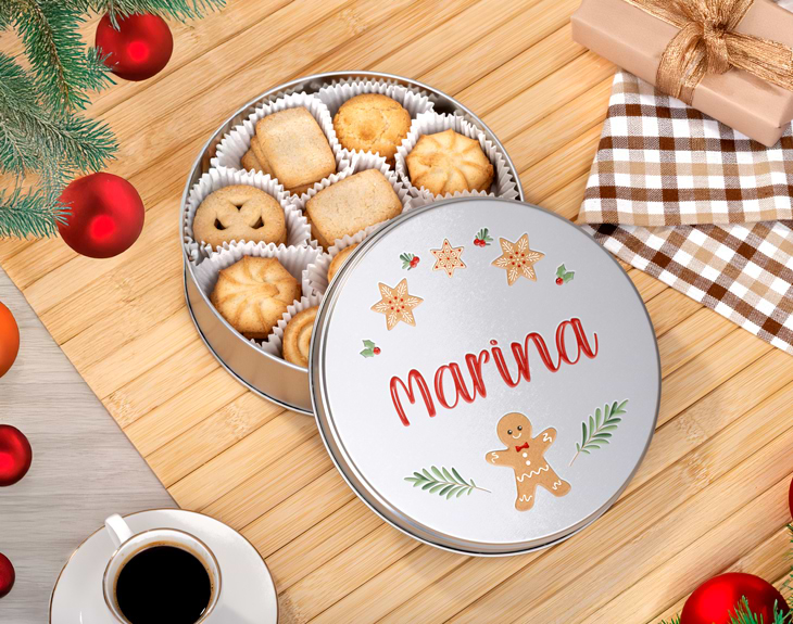 ¿Eres fan de las galletas de mantequilla y también de la Navidad? Entonces esta lata de galletas personalizada es justo lo que necesitas para unir tus dos pasiones. Porque seamos sinceros ¿Quién puede resistirse a una buena galleta en Navidad? Con dos diseños navideños irresistibles, uno con mini Santas y otro con un muñeco de jengibre, esta lata es una monada. Pero lo mejor está en la tapa: puedes personalizarla con un nombre o una frase corta, y convertirla en el detalle más divertido y original de las fiestas. Y no solo durante la Navidad. Cuando se terminen las galletitas (que volarán), podrás seguir usándola todo el año para guardar lo que quieras. Así, tu lata de galletas se convierte también en un recuerdo útil y decorativo. Dentro encontrarás galletas de mantequilla en diferentes formas y, con un poco de suerte, alguna con chocolate. Es el regalo de Navidad personalizado ideal para sorprender a alguien especial: un miembro de la familia, un amigo o tu pareja más golosa. Personalizarla es facilísimo: solo añade al carrito, elige tu diseño favorito y escribe el nombre o frase que quieras. Así de rápido tendrás el regalo original navideño más dulce y bonito de todos. Y triunfarás seguro. Diámetro: 19 cm. Peso: 227g aprox. Importante: El peso y color de la lata puede variar según stock.
