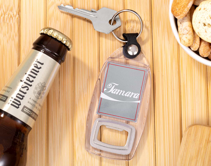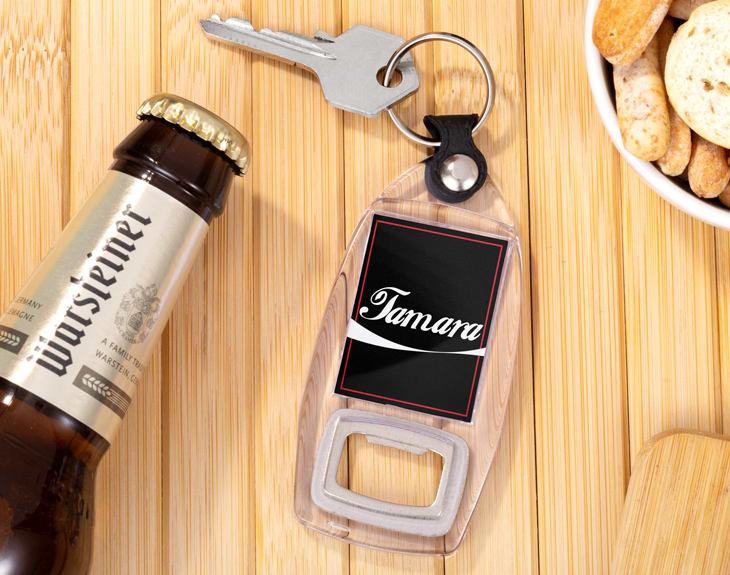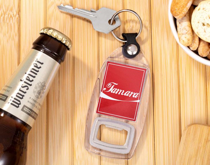 No hay nada que aporte mayor felicidad que disfrutar de una Coca-Cola bien fresquita. Y es que este delicioso refresco le alegra el día a cualquiera. Por eso, vayas donde vayas vas a necesitar llevar siempre encima este llavero abrebotellas personalizado. Es ideal porque además de ser un accesorio súper útil para organizar tus llaves y no perderlas nunca, también podrás abrir cualquier botella. Si quieres que este original regalo deje sin palabras a quien lo reciba, no te olvides que podrás personalizar a tu gusto su diseño inspirado en la bebida más famosa del mundo. Será genial para un cumpleaños o incluso para el amigo invisible, porque también podrás elegir que diseño de Coca-Cola te gusta más. ¡Tu llavero será lo más! Pero espera porque falta el último paso que es personalizar este llavero abrebotellas. Añade el producto al carrito y entra en el área de personalización. Una vez dentro, lo único que tienes que hacer es completar este diseño con el nombre que quieras y listo. Tendrás el mejor regalo del mundo para esa persona amante de la Coca-Cola. ¡Le encantará! Medidas: 10 x 4,5 cm.