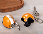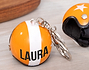 • Llavero casco de moto naranja personalizado. • Tarjeta Recordatoria.