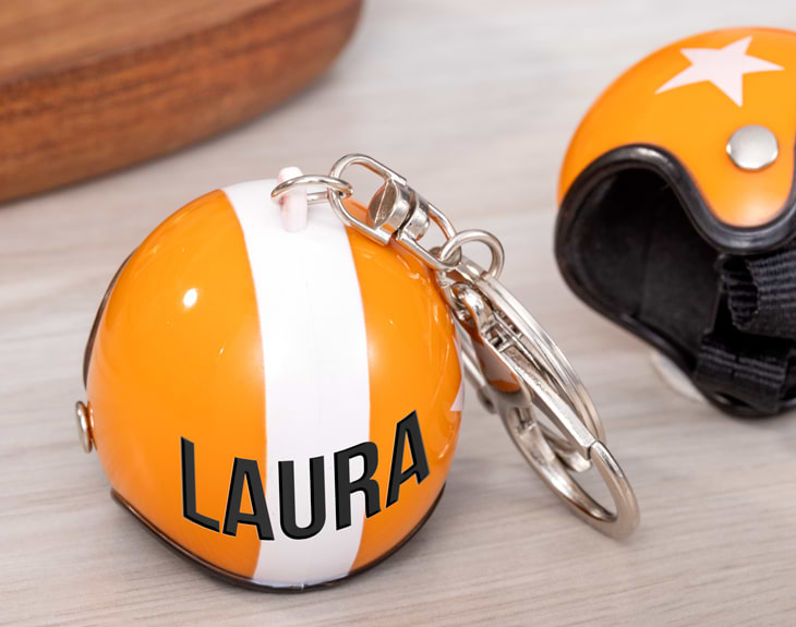 ¿Tienes a alguien en tu vida que no se baja de la moto? Entonces este llavero casco moto personalizado es el detalle perfecto para hacerle sonreír y recordarle su pasión por las dos ruedas allá donde vaya. Este llavero personalizado con nombre no solo es práctico, sino que además tiene un diseño de casco chulísimo en color naranja, que puedes personalizar con el nombre que tú elijas. Así será un accesorio totalmente único. Es el regalo original para motociclistas que estabas buscando: ideal para cumpleaños, Navidad o simplemente para sorprender sin motivo. Seguro que le encantará y le acompañará en cada nueva aventura sobre el asfalto. Y sus llaves nunca volverán a estar solas. Personalizarlo es facilísimo: añade el producto al carrito, escribe el nombre en el área de diseño y listo. Tendrás el regalo original más guay para llevar tus llaves a todas partes, en moto, por supuesto.
