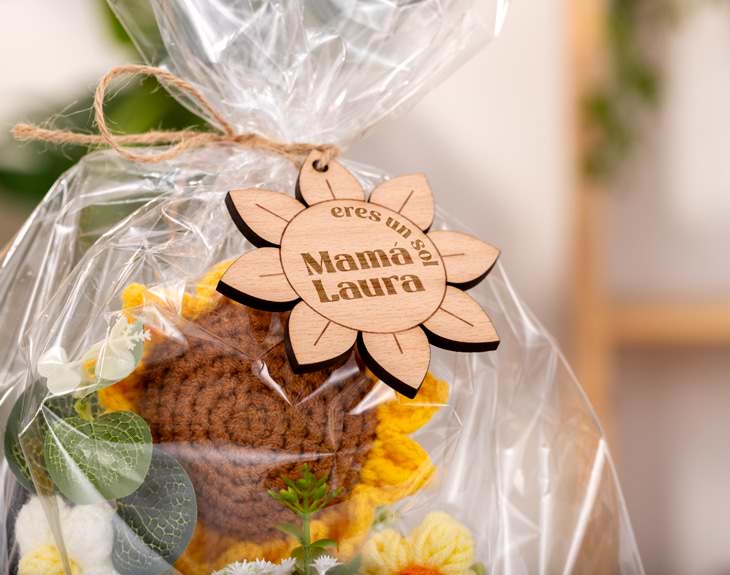 Si como mujer es increíble, como madre es un sol y hay que recordárselo todos los días. Para las mejores madres está pensada esta maceta con girasol de crochet “Eres un sol”. Un detalle lleno de cariño que transmite exactamente eso que a veces cuesta poner en palabras. Esta bonita maceta incluye un girasol tejido a crochet, acompañado de un girasol de madera personalizado donde podrás añadir el nombre de mamá. Una combinación perfecta entre lo artesanal y lo personal que convierte este regalo en algo único y muy especial. El mensaje “Eres un sol” lo dice todo: es ideal para agradecer, emocionar y sacar una sonrisa a mamá este Día de la Madre. Porque siempre está ahí, ya sea mamá, una abuela, una profesora, una amiga o cualquier persona importante en tu vida, este detalle se convertirá en un recuerdo inolvidable. Además, a diferencia de las flores naturales, este girasol no se marchita, por lo que podrá conservarse durante mucho tiempo como símbolo de cariño, alegría y buenos momentos compartidos. Personalizar esta maceta con girasol es muy sencillo. Solo tienes que añadir el producto al carrito y escribir el nombre que quieras incluir en el girasol de madera. Nosotros nos encargamos de que llegue perfecto y listo para regalar. Un regalo original y duradero para personas que, como este girasol… iluminan todo a su alrededor.