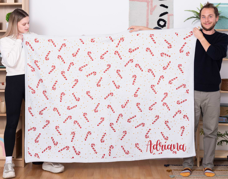 La Navidad es ese momento del año en el que apetece hacer maratón de películas, mantita en mano y sofá. Y con el frío llamando a la puerta, no hay nada mejor que una manta navideña personalizada para convertir tu salón en un rincón acogedor lleno de magia y espíritu festivo. Bastones de caramelo, todo lo que necesitas para disfrutar de la época más especial del año. Este regalo de Navidad es ideal para sorprender a esa persona que vive intensamente la decoración navideña y adora los detalles únicos. Lo mejor es que puedes personalizar la manta con el nombre que quieras. Así tendrá dueño oficial y no habrá dudas de quién se queda con ella en las tardes de peli y chocolate caliente. Personalizarla es facilísimo: añádela al carrito, selecciona el diseño que más te guste y escribe el texto que quieras —nombres, fechas, mensajes especiales—. Nosotros nos encargamos del resto para que llegue perfecta y lista para regalar. Es un detalle original, práctico y lleno de emoción, perfecto para acertar estas Navidades. Las medidas son aproximadas y pueden variar unos centímetros: 170 cm x 130 cm.