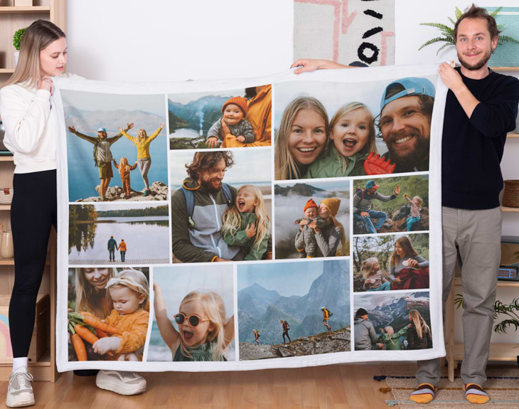 Cuando llega la época de frío toca hacer el clásico cambio de armario… y, por supuesto, también renovar la ropa de cama para poner algo mucho más calentito. Y aquí es donde esta manta collage personalizada se convierte en tu mejor aliada para que el frío más traicionero no te pille desprevenida ni de broma. Además, esta preciosa manta mosaico con fotos es un acierto total como regalo de cumpleaños o para el amigo invisible. Es perfecta para ese compi del trabajo que odia pasar frío, pero que adora los detalles que se hacen con cariño. Podrás incluir hasta 12 fotos: las favoritas de esa persona, recuerdos compartidos, momentos divertidos, viajes, celebraciones… Lo que quieras. Doce imágenes que capturan perfectamente esos instantes más especiales y bonitos que merece tener siempre muy, muy cerca. Personalizarla es facilísimo: añádela al carrito, entra en el área de diseño, sube tus fotos y colócalas como más te guste. ¡Y listo! En pocos minutos tendrás el regalo personalizado con fotos más cálido, original y especial de todos. Ideal para envolveros en recuerdos… y en una manta que da gusto. Las medidas pueden varias unos centímetros, son aproximadas: 170cm x 130cm