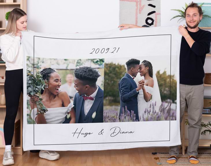 ¿Quieres darle un toque especial a vuestro aniversario? Esta manta personalizada convertirá tu hogar en un espacio aún más emotivo. Suave y comodísima, crea el ambiente perfecto para vuestros momentos de relax y para acurrucaros juntos en el sofá. Será un regalo original lleno de significado para ti y tu pareja, ya que podrás personalizarla con la foto y el texto que quieras. Ya sean vuestros nombres, una fecha importante o un mensaje especial, esta manta es perfecta para celebrar un aniversario o San Valentín bien abrigados. Personalizar tu manta con foto y texto es muy sencillo: añádela al carrito, sube la imagen que más te guste y escribe el texto que desees en el área de diseño. En pocos pasos tendrás un regalo romántico que es mucho más que un detalle: dirá “te quiero” de una forma única y elegante. Las medidas son aproximadas y pueden variar unos centímetros: 170 x 130 cm.