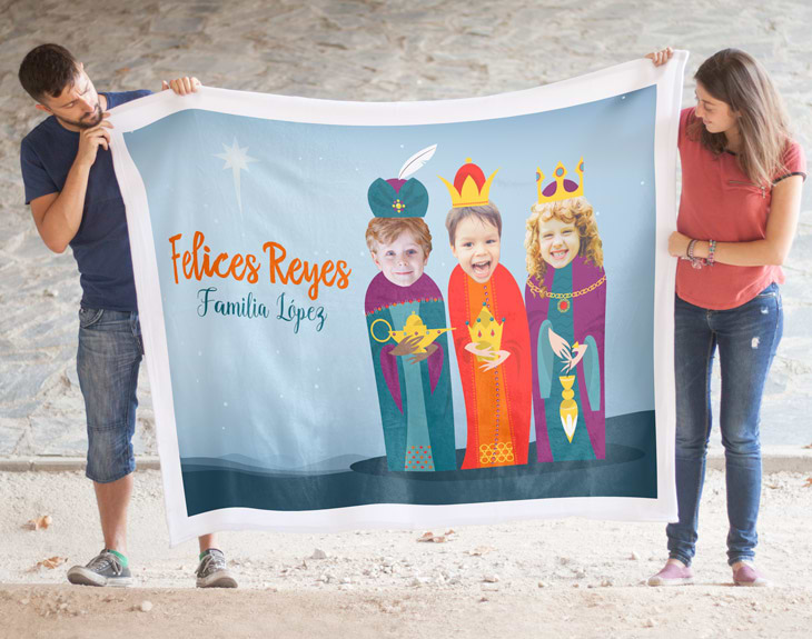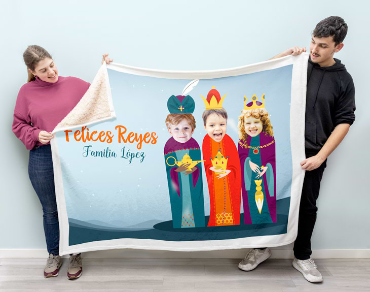 ¿Eres de los que espera impacientemente a los Reyes Magos? Cada vez queda menos pero si la espera se te está haciendo dura nuestra manta personalizada es el detalle ideal para que se te haga más ameno y encima te abrigue en las frías noches de invierno, ¡son todo ventajas! Y también se lo puedes pedir a sus majestades de oriente si así lo prefieres para que te lo traigan la noche del 5. Seguro que te sientes identificado con algún rey mago. ¿Eres más de Melchor, Gaspar o Baltasar? Cualquiera de los tres es increíble y ayuda a que nuestras navidades sean aún más bonitas de lo que ya lo son por sí solas. Todos los años vienen conducidos a nuestros hogares por la estrella de Belén a traernos sus mejores regalos, aunque originalmente llevaban oro, incienso y mirra. Con este diseño podrás verte convertido en uno de estos simpáticos reyes, junto a otras 2 personas más y elegir qué rey es cada uno. Es un regalo original perfecto tanto para mayores como pequeños. ¡Les hará un montón de ilusión recibir esta manta con su cara! Este producto ofrece tres opciones distintas de mantas, dependiendo del gusto de la persona a la que se le vaya a regalar. Si lo que más le apasiona es una manta aterciopelada, de esas que dan mucho gusto cuando te la pones encima, la manta polar es la mejor opción. Por otro lado, si prefieres una que sea muy calentita y suave, y te abrigue en las largas noches invernales, la manta coralina es perfecta para esa persona especial. Y por último nuestra manta sherpa que tiene un poco de ambas: el borreguillo más calentito y la suavidad de la manta coralina.