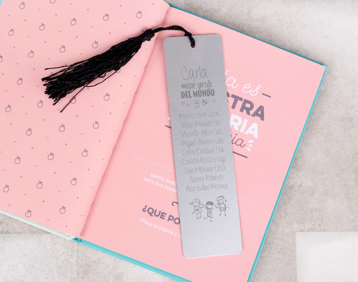 Un regalo muy especial si quieres, junto con tu clase, sorprender a la mejor profesora del mundo. Si estáis encantados de haber vivido con ella todo este curso, es el momento de darle las gracias por enseñaron con el corazón, haceros reír y comprenderos todos los días. Una profesora también merece regalos, y si son originales, ¡mucho mejor! Por eso, este marcapáginas personalizado es perfecto para darle una sorpresa increíble. ¡No lo olvidará jamás! Medidas: 15 cm x 4 cm. El modelo grande puede ser ovalado o rectangular según stock. Material: aluminio.