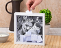 • Marco blanco de madera 20cm x 20cm x 5cm personalizado. • Tarjeta recordatoria.