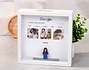 • Marco blanco de madera 21,5 x 21,5 x 4,5cm con minifigura Lego. • Tarjeta recordatoria.
