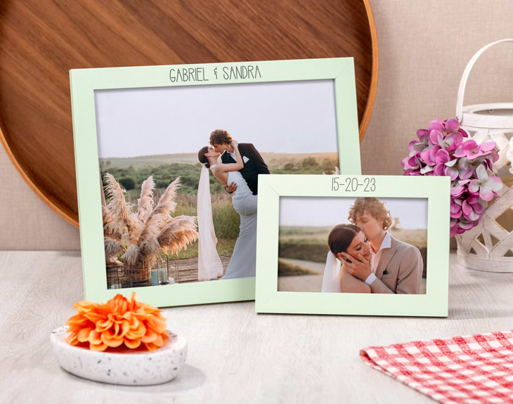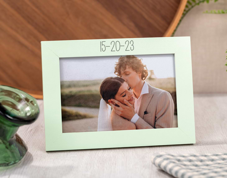 Inspirado en los tonos verdes de la mentha piperita o peppermint, este marco de fotos personalizado es perfecto para albergar esa fotografía especial. Un regalo perfecto para sorprender en cualquier ocasión gracias a su diseño sencillo y su color pausado. Modelo grande: Tamaño de la foto: 20 x 25cm Medidas del marco: 23 x 28cm Modelo pequeño: Tamaño de la foto: 15 x 10cm Medidas del marco: 18 x 13cm