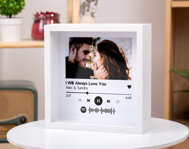 Escuchar esa canción que os recuerda el uno al otro, a vuestro amor y a todos los momentos compartidos, es una de las cosas más bonitas que existen. Por eso, creemos que esta idea de regalo original para parejas es simplemente perfecta. Te presentamos nuestro marco personalizado “Canción Spotify”.