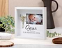 • Marco blanco de madera 20cm x 20cm x 5cm personalizado. • Tarjeta recordatoria.