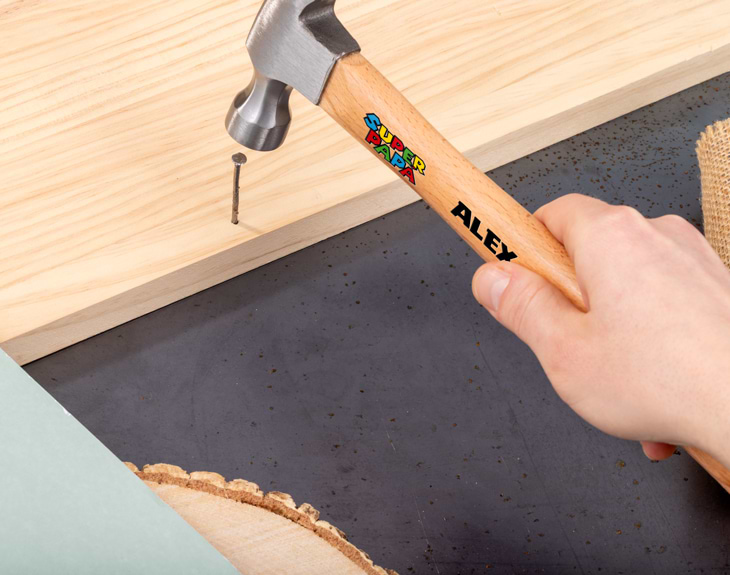 ¿Qué tal un martillo para decirle que es el mejor Superpapá del planeta? Así, cada vez que arregle algo en casa, se acordará de ti. Sin duda, los regalos personalizados para el Día del Padre son una apuesta segura para emocionar a cualquier papá, y con esta original herramienta acertarás seguro. Este martillo de madera y acero personalizado es el regalo perfecto para sorprenderle. Un detalle original, práctico y pensado especialmente para ese manitas que siempre está ahí cuando algo se rompe. El mensaje “Lo has clavado” representa a tu padre a la perfección. Con cabeza de acero resistente y mango de madera, por un lado cuenta con la superficie de impacto para clavar, y por el otro con la característica uña en forma de V que permite retirar clavos con facilidad. Una herramienta imprescindible en cualquier caja de herramientas. Y lo mejor de este martillo es su personalización. Podrás completar el diseño con el nombre que tú quieras, convirtiéndolo en un regalo único que le sacará una sonrisa cada vez que lo utilice. Un detalle que combina utilidad y emoción, perfecto para demostrarle cuánto lo valoras. Personalizarlo es muy fácil: añade el producto al carrito y escribe el nombre que quieras incluir en el diseño. Nosotros nos encargaremos de prepararlo para que llegue listo para regalar a ese Superpapá que nunca falla. Un regalo original para el auténtico manitas de la casa.