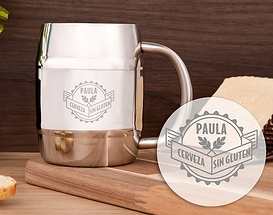 • Jarra de cerveza grabada. • Tarjeta recordatoria.