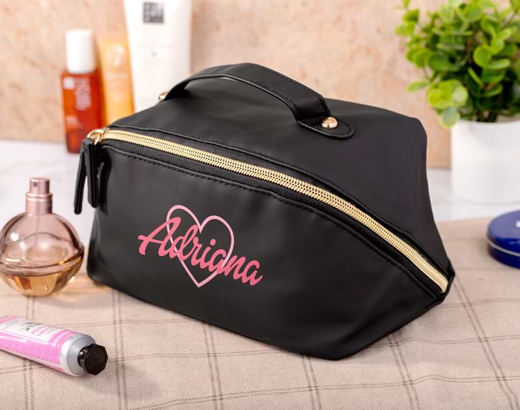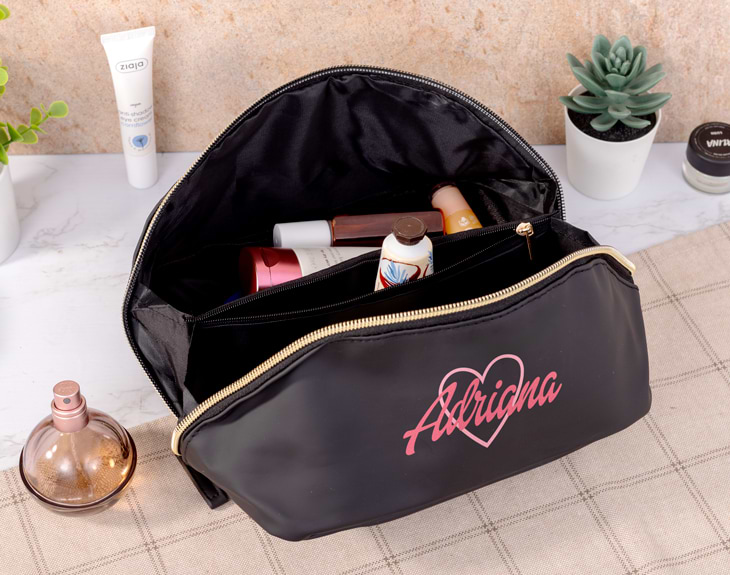 ¡Este neceser personalizado convertirá tu mundo en color rosa! Y también organizará tus cosméticos, cremas, colonias... Todo lo que sueles llevar suelto en el bolso ahora estará a salvo en un original neceser impermeable. Ideal para el día a día o para tus vacaciones: el complemento perfecto. Gracias a su cremallera de apertura completa, ya no tendrás que revolver para encontrar lo que necesites. Además, en su interior encontrarás un bolsillo con cremallera para guardar lo más delicado y dos compartimientos internos ideales que te permitirán tener todo bien organizado. Y como está fabricado con un material impermeable, tus cosméticos estarán siempre protegidos. Pero lo mejor y más especial de este neceser, además de su bonito diseño, es que es personalizable. Si buscas un regalo original para quien es fanática de la muñeca Dollina, puedes añadir su nombre en él y convertirlo en el neceser perfecto. Es ideal para sorprender en cumpleaños, Día de la Madre, amigo invisible o en cualquier otra ocasión. Y personalizarlo es muy fácil: añade el producto al carrito, entra al área de personalización y escribe el nombre o texto que quieras. Así de rápido tendrás un regalo original para cualquier ocasión. Medidas: 22 x 12 cm aproximadamente.