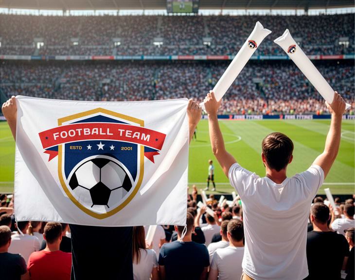 • Bandera personalizada 102 x 70,5 cm. • 2 Aplaudidores personalizados. • Tarjeta Recordatoria.