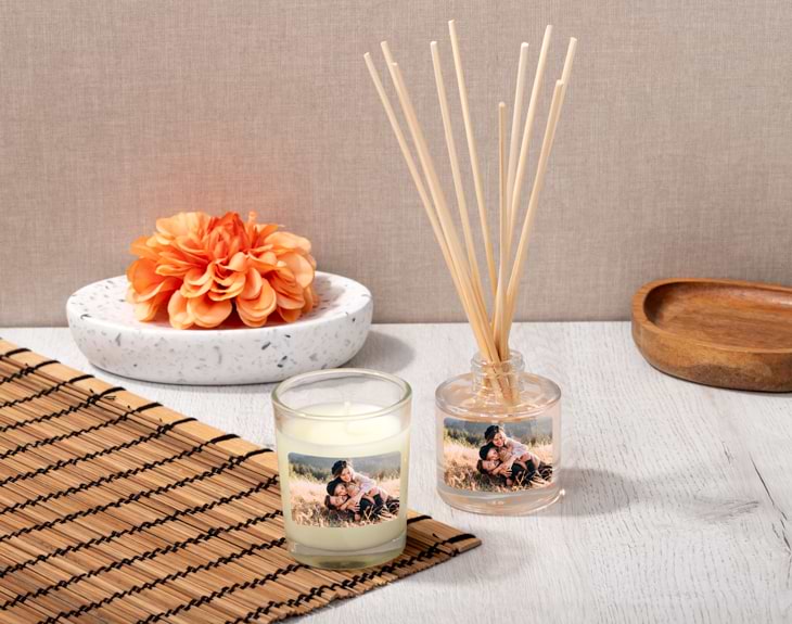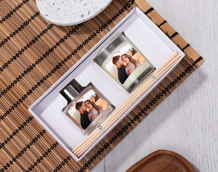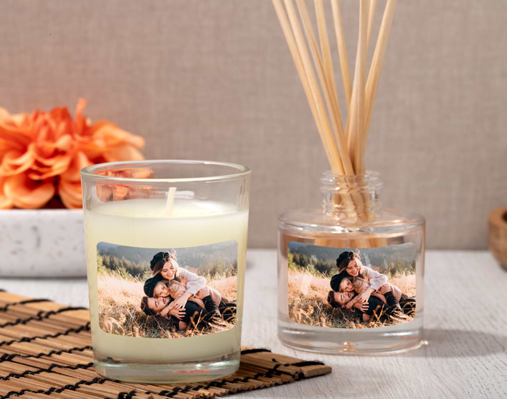 • Vela personalizada. • Ambientador Mikado personalizado • Tarjeta recordatoria.