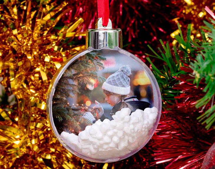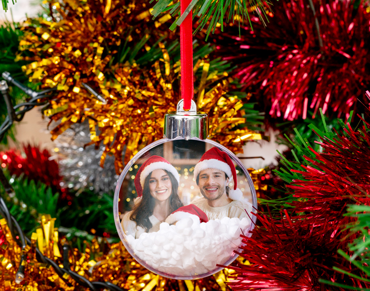 Estas Navidades, convierte la decoración de tu árbol en una experiencia especial con nuestros adornos de metacrilato personalizados. Imagina una bola para el árbol con tu foto favorita, un detalle original y emotivo que reunirá a toda la familia y hará que cada rincón de tu hogar respire la magia de la Navidad. Dale a tu hogar un toque diferente con esta bola personalizada que incluye en su interior nieve decorativa artificial, un detalle encantador que fascinará tanto a niños como a adultos. Nada evoca mejor el espíritu navideño que un árbol repleto de bolas con fotos y esa nieve que parece sacada directamente del Polo Norte. Personalizar tu bola de Navidad con nieve es tan fácil como añadir la cantidad que quieras al carrito y entrar en nuestro diseñador online. Podrás crear un adorno único, personalizable por ambas caras, para que dejes volar tu imaginación y diseñes el regalo perfecto para ti o para sorprender a tus seres queridos con un detalle inolvidable y lleno de emoción. Diámetro 8cm.