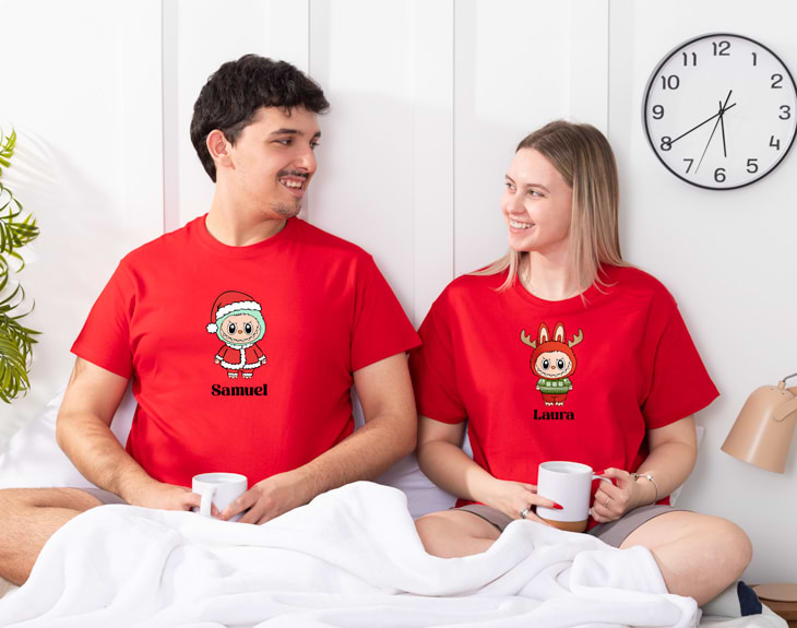 Este año, la Navidad llega acompañada de un toque aún más especial. Inspirado en los muñecos coleccionables que han sido auténtico furor este año, te presentamos un pijama navideño personalizado que hará que mayores y pequeños quieran ponerse en modo Navidad desde el primer minuto. Con un diseño adorable de estilo Labubu, este pijama combina comodidad y ese puntito de tendencia que tanto nos gusta. Su tejido suave y calentito lo convierte en la prenda perfecta para disfrutar de películas en el sofá, abrir regalos por la mañana o preparar una noche especial en familia. Es imposible no sonreír al verlo… y aún más cuando lo personalizas con el nombre que tú elijas. Es un detalle ideal como regalo navideño para la familia, para amigos o para sorprender a alguien que adore estas pequeñas figuras tan populares. También es perfecto para los peques: en Navidad, este pijama personalizado se convertirá en su favorito en cuanto lo vea. Personalizarlo es muy sencillo: elige si lo quieres infantil o adulto, selecciona entre pijama de invierno o verano, escoge la talla y el color de la camiseta, elige tu diseño favorito de criatura navideña y escribe el nombre que desees. En unos minutos tendrás un regalo original navideño, único y lleno de ilusión. Material: - Camiseta invierno: 100% algodón (excepto color gris: 85% algodón / 15% viscosa). - Camiseta verano: 100% algodón (excepto color gris: 85% algodón / 15% viscosa). - Pantalón invierno: 100% algodón. - Pantalón verano: 100% algodón. Importante: Las medidas son aproximadas, pueden variar 5cm por encima o por debajo. Importante: el tono de los colores puede variar en intensidad según stock