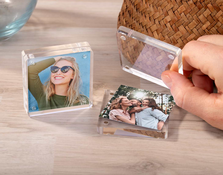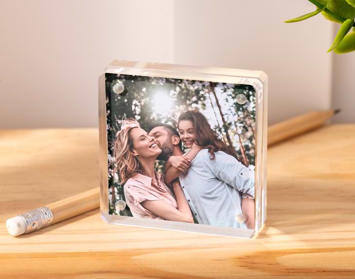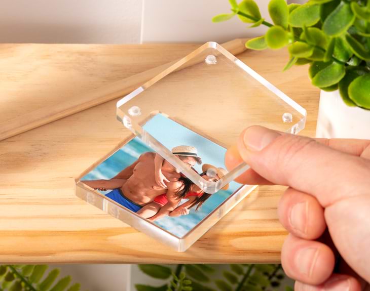 Seguro que tienes en mente algún recuerdo que te gustaría enmarcar y tener siempre presente, sea donde sea. Con este portafotos personalizado de metacrilato e imán, podrás decorar cualquier rincón con esa imagen que tanto te gusta y que no quieres olvidar nunca. Gracias a este original marco transparente podrás crear un adornor único donde tu mejor recuerdo será el protagonista absoluto. Además, su tamaño te permite ponerlo donde quieras porque no ocupa nada. En la mesita de noche, en una estantería, en la mesa de la oficina... ¡Quedará genial en cualquier sitio! Y espera porque todavía queda lo mejor: ¡personalizar este portafotos! Entra en el diseñador y añade tu imagen favorita, nosotros nos encargamos del resto para que quede perfecto y listo para regalar. ¡Triunfarás seguro! Medidas del metacrilato: 6 x 6 x 1,5 cm.