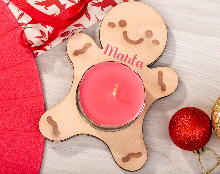 No hay nada como una mesa de Navidad decorada, llena de luz y magia. Si eres de los que cuidan cada detalle, tenemos algo que te va a encantar: un portavelas de madera navideño personalizable que llenará tu hogar de encanto y calidez. Este portavelas es perfecto para iluminar cualquier rincón y crear un ambiente acogedor durante las fiestas. Su diseño con la divertida galleta de jengibre no pasará desapercibido y aportará ese toque mágico que hace especial cada reunión en familia. ¿Lo mejor? ¡Puedes personalizarlo con el nombre que quieras! Es un detalle original y lleno de cariño, ideal para regalar o para completar la decoración de tu casa esta Navidad. Solo tienes que añadir el producto al carrito y acceder a nuestro diseñador online: allí podrás escribir el nombre que irá en esta adorable galleta de jengibre. Haz que esta Navidad brille con un regalo original y hecho a medida. Medidas: 16 x12 cm.