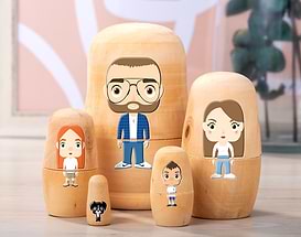Tras dar una vuelta por nuestra web, seguro que has encontrado alguno de nuestros productos familia. ¿Qué son? Primero imagínate poniendo figuritas por cada miembro de la familia: el papá haciendo una barbacoa, la mamá oficinista, los hijos montando en bici… En segundo lugar, pon el nombre de cada uno de ellos. Y para terminar, elige el regalo: ¿un felpudo? ¿una taza? ¿una camiseta? Tenemos prácticamente de todo.